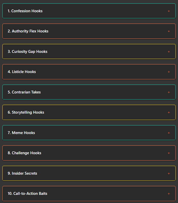 - Mobile-friendly, bookmark-ready — steal a hook, post instantly